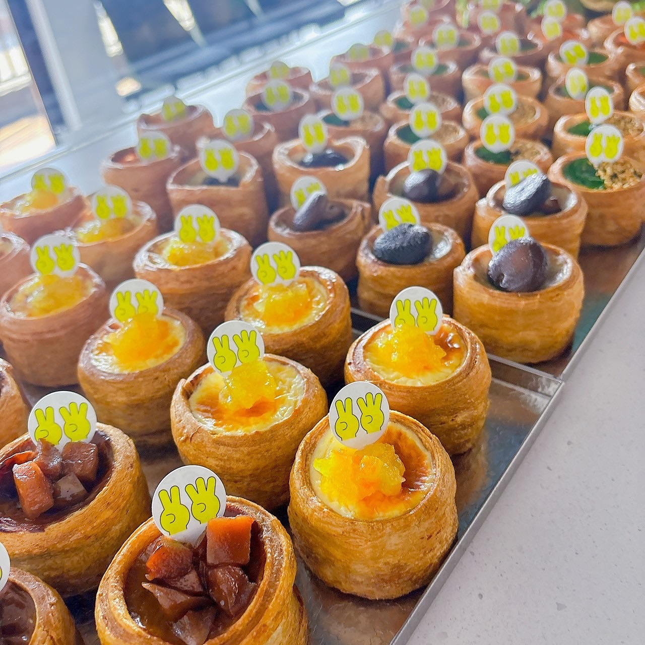 クッキー生地、シュー生地、パイ生地の3種類を使用している