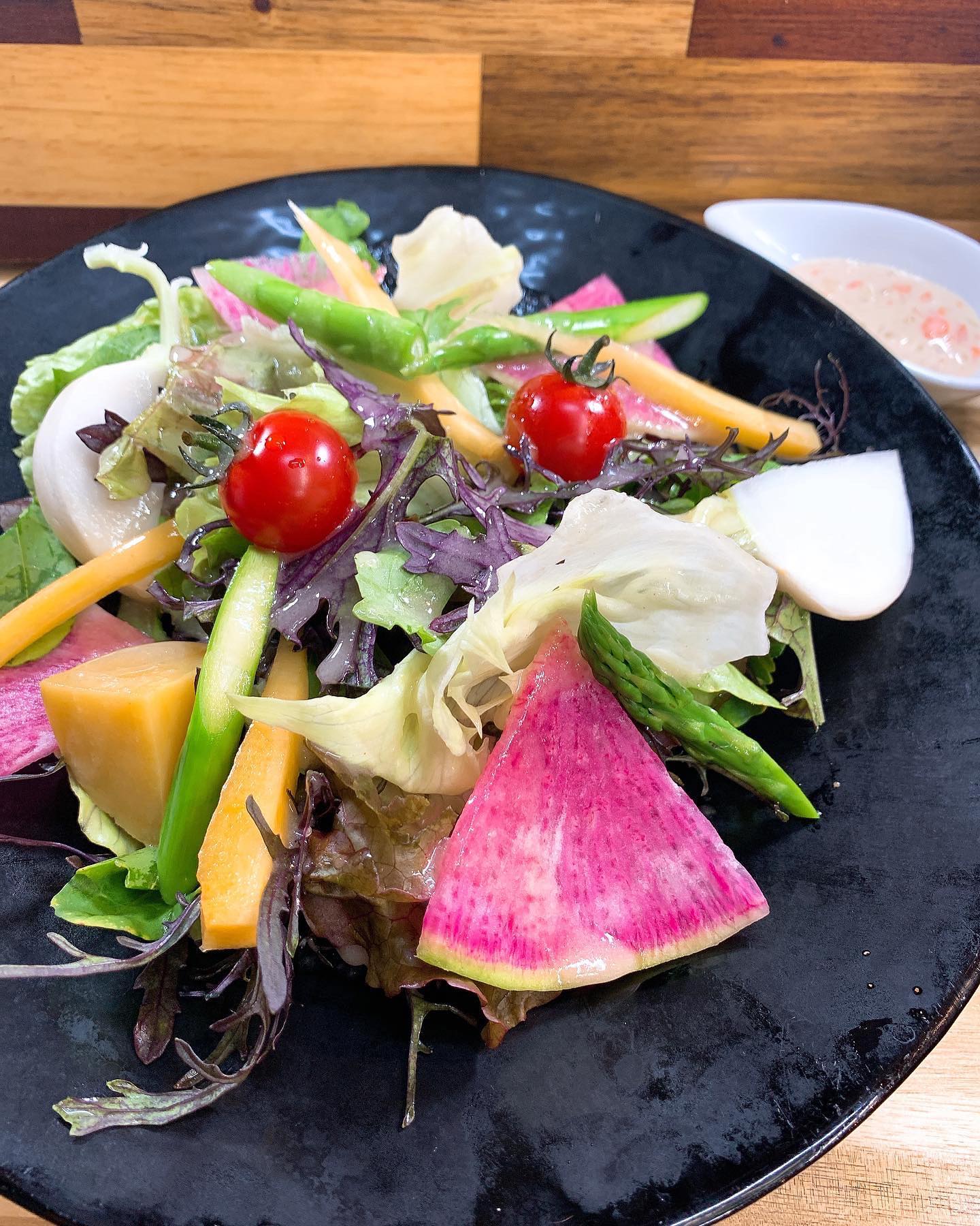 自慢のサラダやバーニャカウダーで使用している、契約農家さんから直送されるお野菜も、みずみずしくて新鮮そのもの🥰