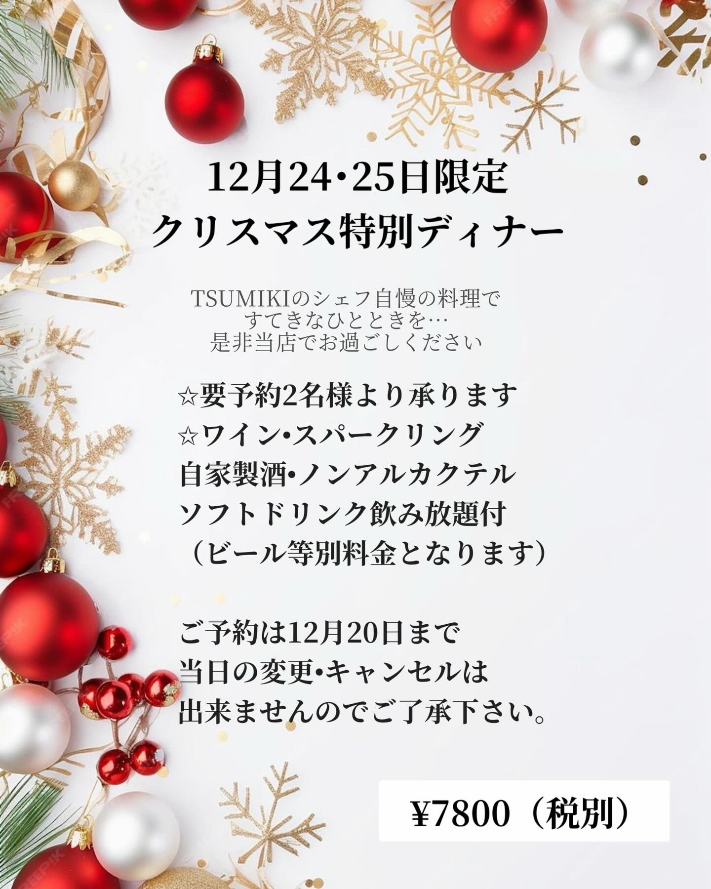 ご家族や恋人、楽しい仲間達とのクリスマスパーティーにぴったりです