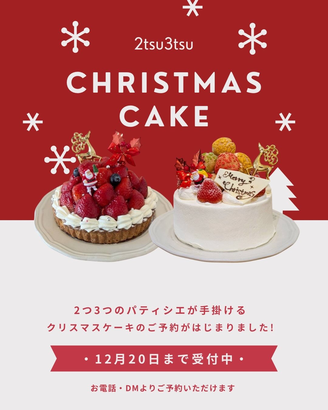 ️今年は、2つ3つのクリスマスケーキ(4号サイズ)の